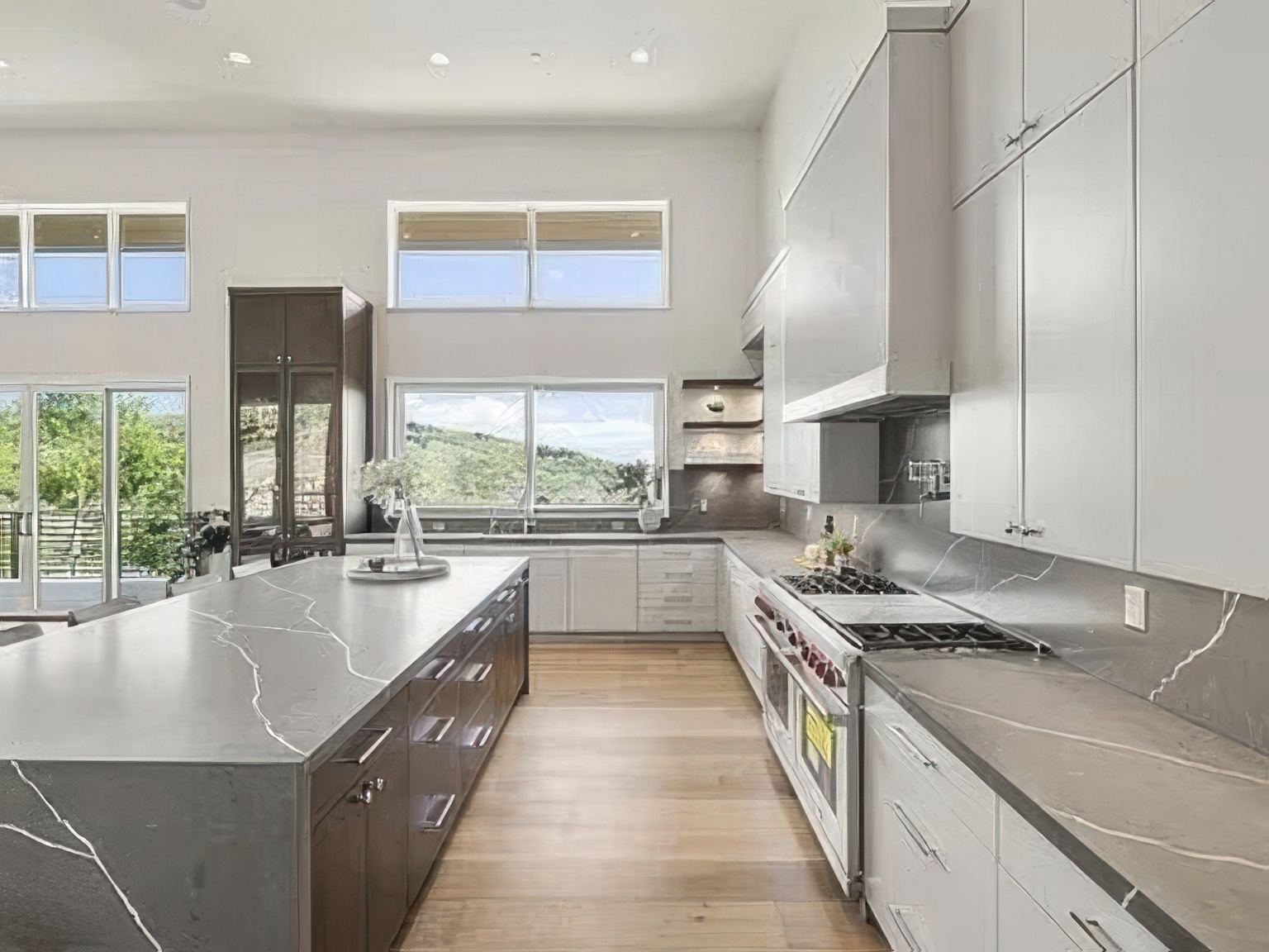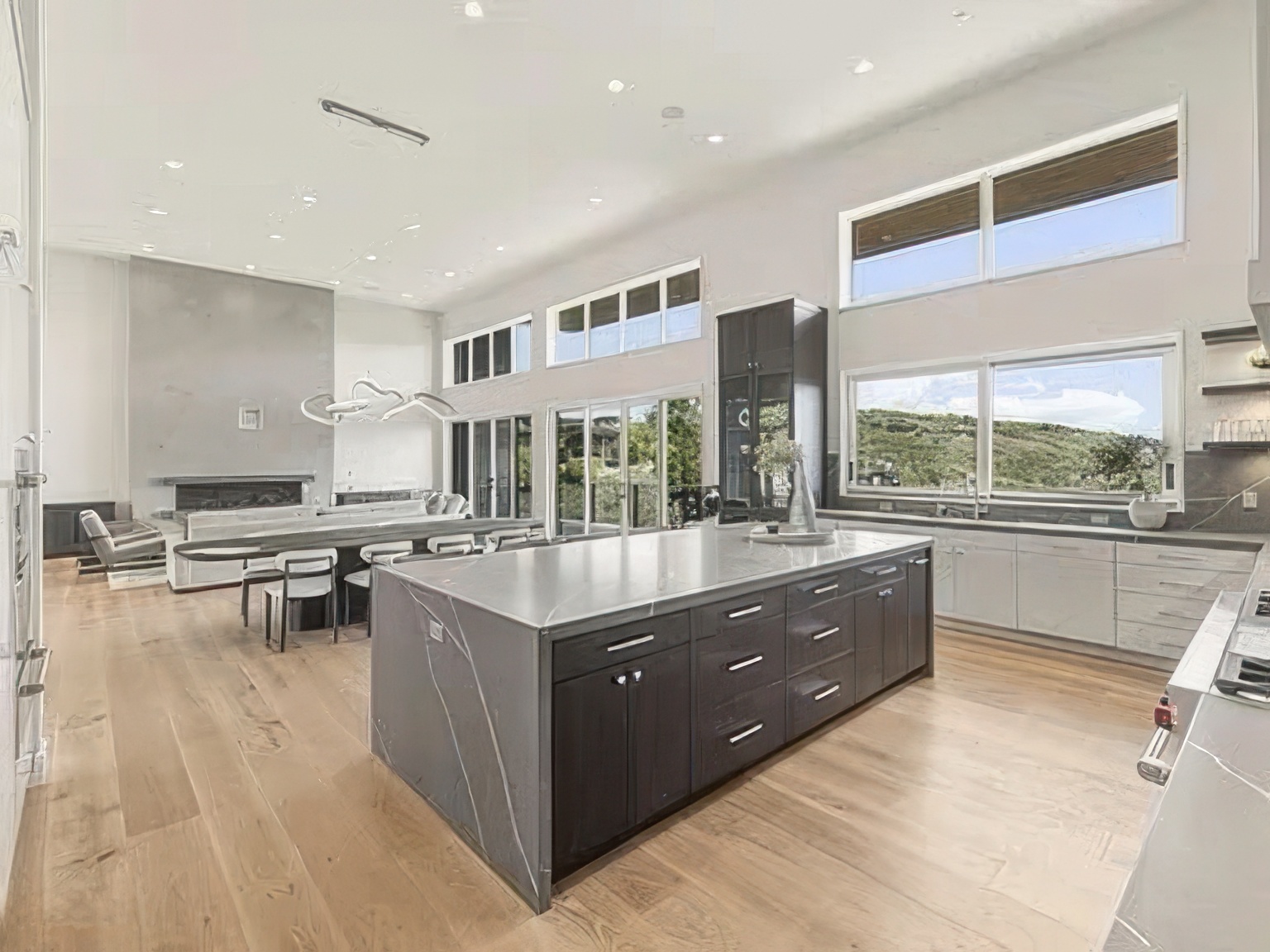 This new construction residence in Park City, Utah is a showcase of modern mountain architecture — clean lines, expansive glass, and a seamless connection to its natural surroundings. Nestled against a lush hillside, the home’s bold horizontal structure blends stone, wood, and steel elements, creating a striking yet harmonious balance with the alpine landscape.
